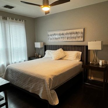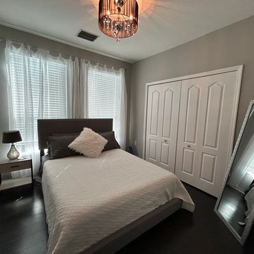 The guest bedroom also includes a walk-in closet and convenient access to a second bathroom. An indoor laundry room provides additional storage.